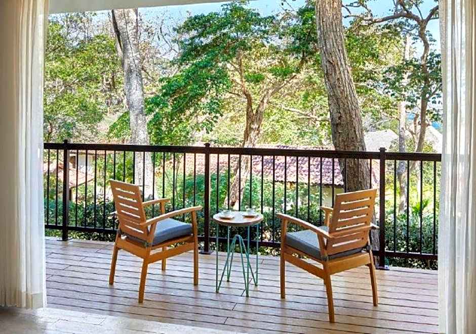 Deluxe Ocean View King Balcony is 527 square feet and includes a king-size bed 150-183 width plus balcony, cable tv, hairdryer, tea and coffee making facilities , ironing set, safe, bathrobes, and slippers.